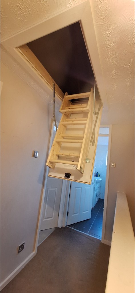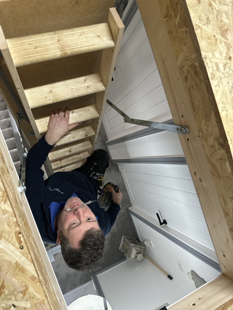 We gave Andy and his family a neat and tidy new space upstairs. The sturdy ladders drop down easily onto the landing. And everything was finished just how Andy wanted it. The insulation we laid makes the space more cosy and soundproof. It will also pay for itself in the long-term thanks to the heat insulation and energy savings.